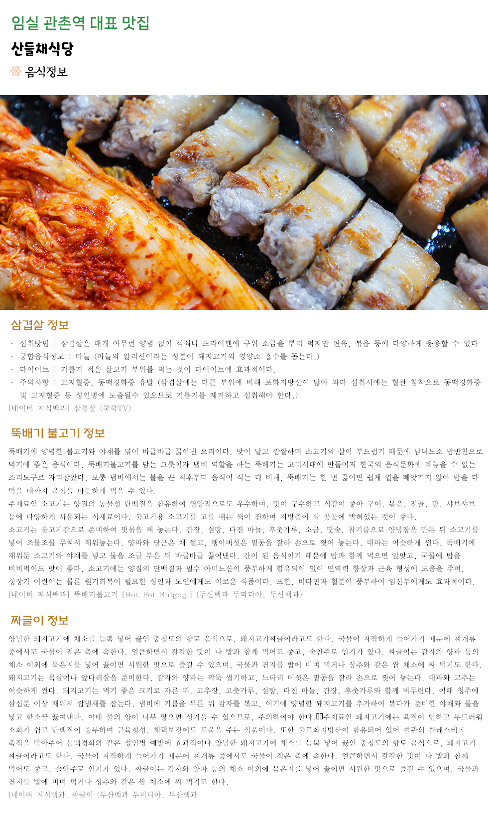• 산들채식당 | 대표 : 이일한 조윤숙 | 사업자등록번호 : 385-29-01139 | 연락처 : 063-642-6566 | 소재지 : 전북 임실군 관촌면 춘향로 3326 1층